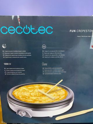 Cecotec Fun Crepe XL con placa de 38 cm de diámetro. Totalmente NUEVA, sin usar. - Placa de acero inoxidable de gran calidad. - Placa extraíble y apta para lavavajillas. - Potencia de 1350 W.
