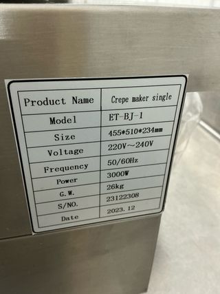Crepera industrial se ha utilizado pocas veces, casi nueva, Potencia de 3kw, 40 cm de diámetro, termostato graduable de 0-300°c, peso aproximado 21 kg.