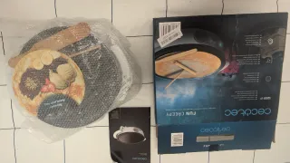La plancha es reversible: por un lado puedes hacer crepes y por el otro pancakes. Utilizada solo 1 vez. Viene con los accesorios de origen y con la caja también. NO NEGOCIABLE.