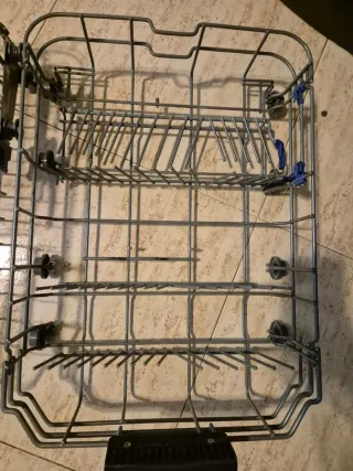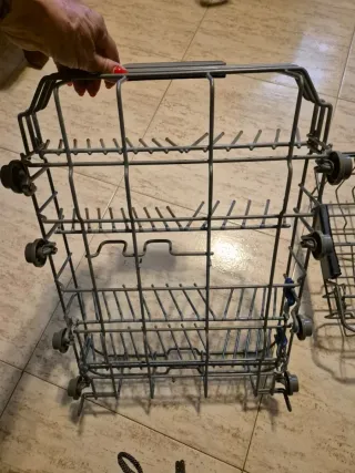 Cestas para lavavajillas Samsung de 10 cubiertos (pequeña) de 45 cm por fuera. Cesta inferior para platos, ollas de 51/36,5 cm, altura 12 cm. Usada, buen estado.