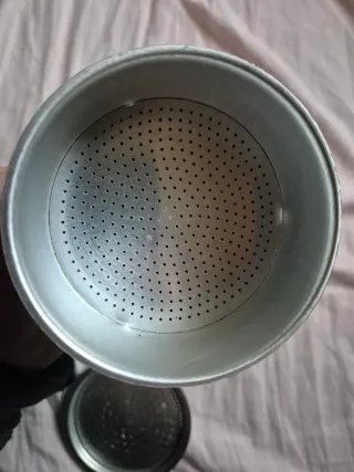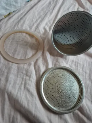 Recambio para cafetera italiana Moka. Cajetin para el café - Filtro metálico. - Junta de goma. Como nuevo. Diámetro 8 cm