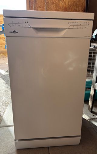 Lavavajillas compacto 45cm de la marca HIGH ONE, ideal para espacios reducidos. Su diseño es moderno y funcional. - Color blanco. - Panel de control intuitivo. - Programas de lavado versátiles.