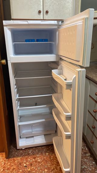 Nevera de dos puertas en color blanco. - Diseño moderno y funcional. - Marca Indesit.