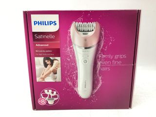 Depiladora eléctrica Philips modelo Wet & Dry. - Incluye cabezal de depilación. - Incluye accesorio para zonas sensibles. - Incluye cepillo de limpieza. - Incluye adaptador de corriente.