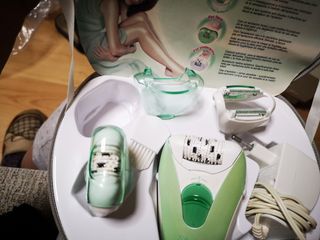 Depiladora de BRAUN para cara y cuerpo, completamente nueva en su estuche de transporte (fue un obsequio, pero prefiero métodos tradicionales). Incluye dos cabezales diferenciados, un cepillo de limpieza, sobres de cremas pre-depilatorias faciales y un cargador. El estuche ofrece una capacidad considerable una vez retirados los protectores plásticos. Este dispositivo incorpora 20 micro-pinzas que eliminan eficazmente incluso el vello más corto, inaccesible para la cera (hasta 0,5 mm). La tecnología Soft-lift asegura la extracción del vello desde la raíz, proporcionando una piel más suave por semanas.