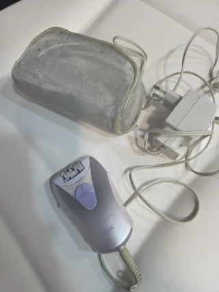 Depiladora eléctrica Braun Silk-épil 9. Incuye cabezal de depilación y afeitado. Bolsa para guardar y de gel para congelar. Cargador. Lleva tiempo sin funcionar y no sé en qué grado se encuentra. No me responsabilizo de su funcionamiento. Lo regalo al comprar algo de mi escaparate.