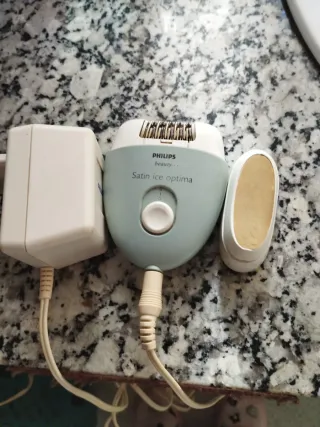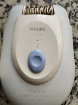 Depiladora eléctrica de la marca Philips, diseñada para el cuidado personal. - Incluye cargador. - Cabezal de depilación.