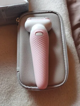 Depiladora eléctrica Braun en color blanco y rosa, con su neceser a juego. - Depiladora eléctrica. - Neceser rosa.