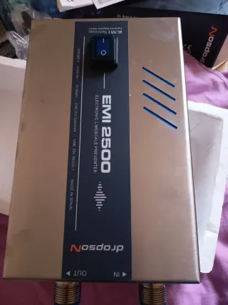 Descalcificador electrónico para prevenir la cal en el agua. - Modelo: EMI 2500 - Marca: Dropson - Tecnología: E.M.I. - Fabricado en España - Voltaje: 220/240 V - Frecuencia: 50/60 Hz - Consumo: 15 Watts