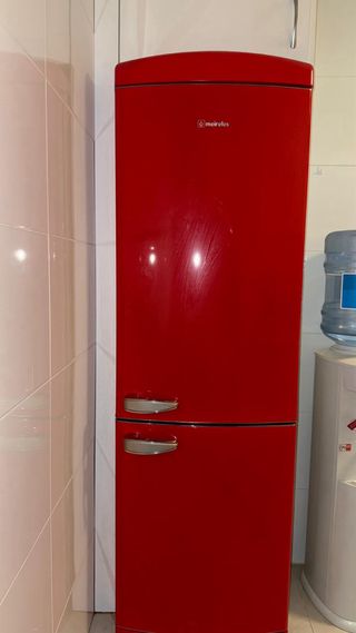 Vendo frigorífico combi Meireles color rojo estilo retro, con congelador inferior. Enfría y congela perfectamente. Diseño muy bonito con tiradores cromados. Se vende por cambio/mudanza. Recogida en mano