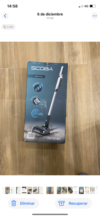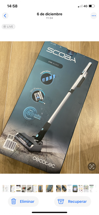Cecotec Aspirador Vertical sin Cable Ultraligero Scoba 2100 Jalisco. - 2 Accesorios. - Batería de litio. - 210 W. - Potencia de succión de 20 kPa. - Autonomía de 40 minutos. - Diseño ligero y ergonómico. Nuevo sin estrenar. En Amazon se vende a 69€.