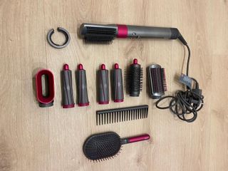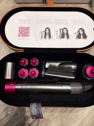 Se vende el set completo de Dyson Airwrap en tonos rosa y plateado. Incluye todos los accesorios originales. - Cepillo voluminizador. - Cepillo alisador suave. -Cepillo alisador firme. -Accesorio de secado previo. -Dos barriles rizadores de 30mm. -Dos barriles rizadores de 40mm. -Filtro de limpieza. -Estuche de almacenamiento.