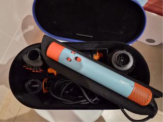 Moldeador y secador Dyson Airwrap en tonos azul y naranja. Incluye varios accesorios para diferentes estilos de peinado. Se vende por falta de uso. Como nuevo. No hago envíos. - Incluye el cuerpo principal del secador. - Varios cabezales de peinado. - Estuche de almacenamiento.