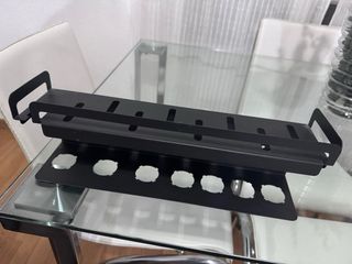 Organizador de pared diseñado para el Dyson Airwrap y sus accesorios. Fabricado en metal resistente, mantiene tus herramientas de peinado ordenadas y accesibles. - Acabado en color negro. - Incluye soporte para el secador y compartimentos para los diferentes cabezales.