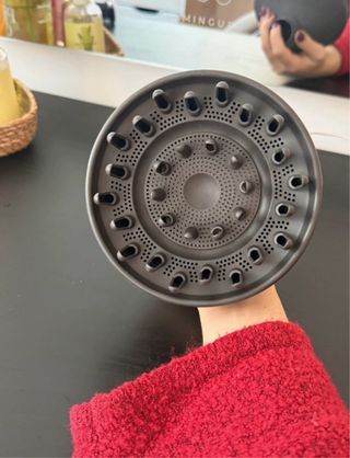 Accesorio difusor para secador de pelo. - Diseño circular con múltiples orificios. - Color gris.