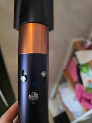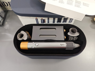 Se vende moldeador y secador Dyson Airwrap en color azul y dorado. Se cambia por plancha de pelo Dyson. Regalo cabezal extra para cardar el pelo. - Incluye varios accesorios para diferentes estilos. - Viene con su caja de almacenamiento.