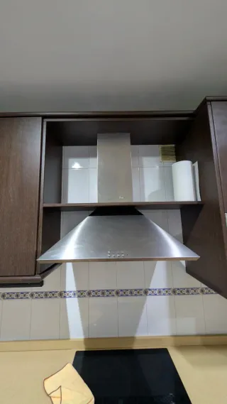 Campana extractora de la marca Fagor. Un accesorio funcional para tu cocina. - Acabado en acero inoxidable. - Diseño moderno y elegante. Tiene ya sus usos por eso el precio para quien no pueda comprar una nueva. Urge la venta o en una semana la tiro. Mando video si queréis verla funcionar. Preferiría en mano por el volumen