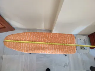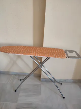 Mesa de planchar con un diseño práctico y funcional. - Superficie de planchado con funda estampada. - Estructura metálica plegable. - Soporte adicional para plancha.