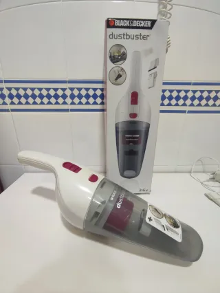 Aspiradora de mano portátil de la marca Black & Decker. - Modelo Dustbuster. - Voltaje: 3.6V. - Color blanco y gris.