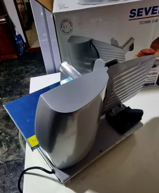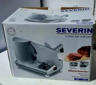 Cortafiambres eléctrico SEVERIN de acero inoxidable. - Modelo: Allesschneider - Potencia: 180 W - Cuchillas: 2 de acero inoxidable - Fabricado en Alemania