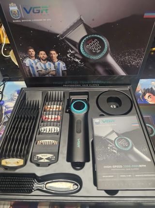Cortapelos profesional VGR con alta velocidad de 7000-9000 RPM. Incluye varios accesorios para diferentes estilos. - Modelo V-601. - Diseño ergonómico. - Pantalla digital LED. - Incluye peines guía de 1.5mm y 1/16 de pulgada. - Cepillo de limpieza. falta bote de aceite