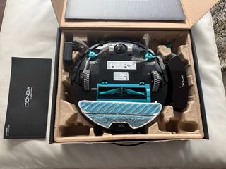 Robot aspirador Cecotec Conga 1490 en su caja original. - Incluye manual de inicio rápido. - Base de carga. - Robot aspirador.