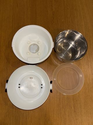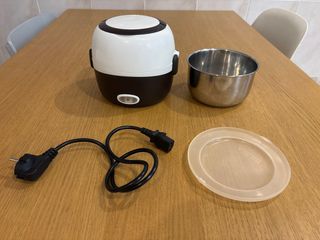 Calentador de comida usado durante la pandemia en el trabajo. 10-15min se calienta la comida. Tambien es una práctica olla eléctrica para cocinar arroz o mantener alimentos calientes. Incluye un recipiente interior de acero inoxidable y su tapa. Enchufe a 230V Consumo 200W Volumen del cazo inoxidable 1L