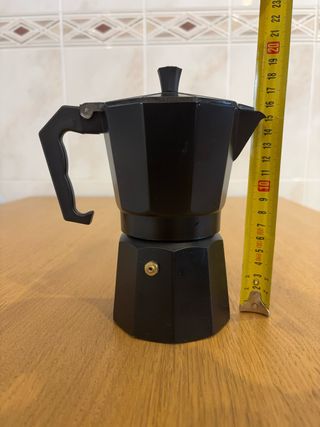 Cafetera italiana de color negro, con capacidad para 6 tazas. - Fabricada en aluminio. Sin usar