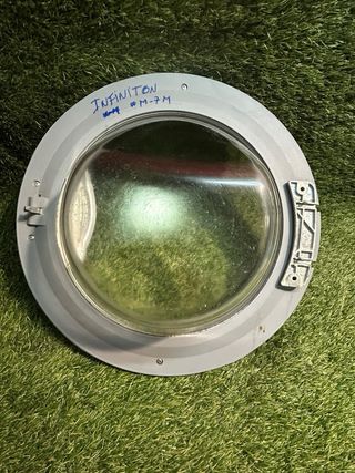 Puerta de lavadora de la marca INFINITON WM-7M - Marco exterior blanco. - Ventana de cristal. - Cierre con pestaña. Con evidentes signos de uso ENVIO RAPIDO!!!!! 🚨🚨✈️✈️