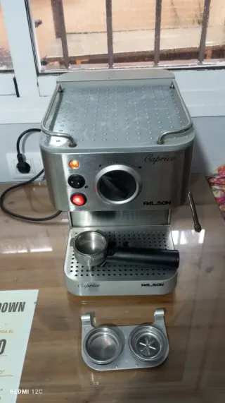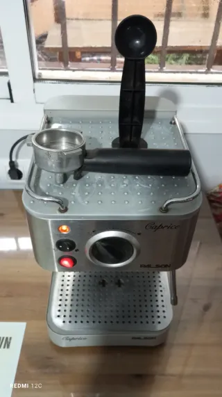 Cafetera espresso con vaporizador de leche, de la marca Palson, modelo Caprice, con acabado en acero inoxidable. Diseñada para preparar deliciosos cafés. LA CAFETERA FUNCIONA PERO HAY QUE CAMBIARLE LA BOMBA DEL AGUA ,PRECIO DE LA BOMBA 14 EUROS EN ALIEXPRESS. PARA REPARAR O PIEZAS.. - Acabado en acero inoxidable. - Modelo Caprice. - Marca Palson.