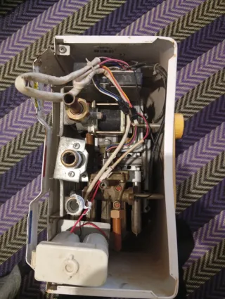 Calintador de gas butano de la marca COINTRA. (NO FONCIONA). Para reglar. - Color blanco y amarillo. - Etiqueta con referencia 'CG8-16'.