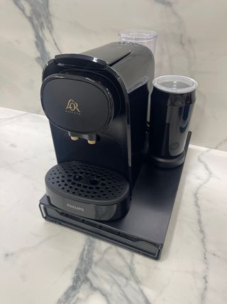 Cafetera Diseñada para preparar café de alta calidad. Prepara dos espressos a la vez para compartir, un espresso o un café doble - Modelo L'Or Barista - Color negro. - Incluye espumador de leche para las bebidas de café con leche. - Incluye un cajón para colocar las cápsulas de café.