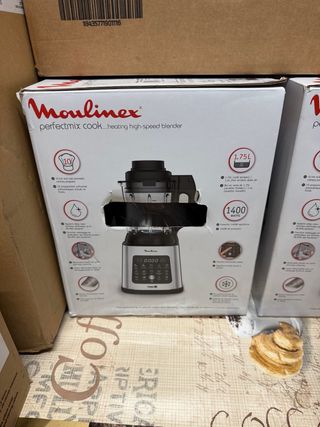 Batidora de alta velocidad Moulinex Perfectmix Cook. - Capacidad de 1.75L (recetas frías) / 2.4L (recetas calientes). - Potencia de 1400W. - 10 programas automáticos. - Función de limpieza.