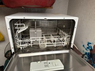 Lavavajillas de libre instalación en color blanco. Cuenta con cestas interiores para la colocación de la vajilla. - Cesta superior ajustable. - Dos dispensadores para detergente y abrillantador.