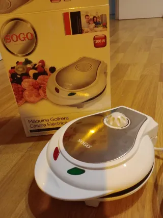 Máquina gofrera eléctrica Sogo. - Diseño moderno y compacto. - Potencia de 1200W. - Indicadores luminosos de encendido y listo. Usado una vez