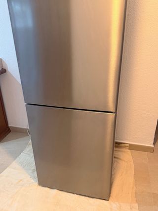 Nevera combi de la marca AEG con un elegante acabado en acero inoxidable. - Diseño moderno. - Material: Acero inoxidable. Precio negociable.