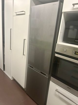 Frigorífico de la marca Sharp con acabado en color plateado. - Diseño moderno y elegante. - Tirador integrado.