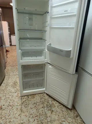 Nevera combi de la marca Ecrón. Diseño moderno y funcional. - Color blanco. - Puerta superior para congelador. - Puerta inferior para frigorífico.