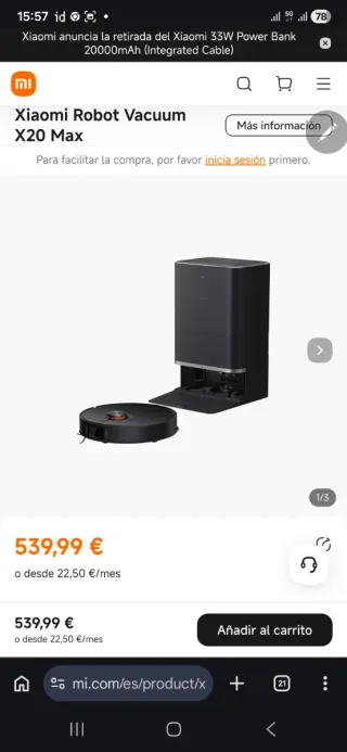 Aspirador robot Xiaomi Robot Vacuum X20 Max. - Modelo X20 Max. - Marca Xiaomi.