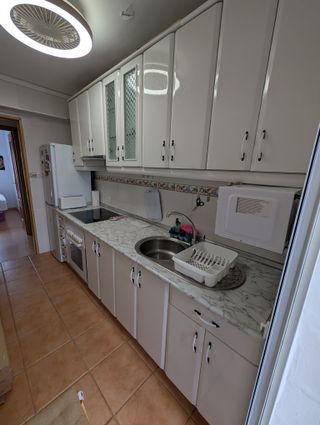 Vendo muebles de cocina en muy buen estado, medida total de 260 cm de ancho. Distribución (módulos de derecha a izquierda): Módulos: 50 + 60 + 60 + 60 + 30 cm. Encimera: 64 cm de profundidad (acabado mármol). Armarios superiores: 30 cm de profundidad. Incluye vitrina de cristal con iluminación interna. Incluye fregadero de acero inoxidable. Incluye electrodomésticos: Placa vitrocerámica. Horno eléctrico. Campana extractora integrada. Iluminación LED sobre la encimera. Desmontaje y transporte: A cargo del comprador (ayuda disponible para coordinar).