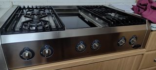 Cocina mixta con quemadores de gas y zona de vitrocerámica. Tiene muy poco uso. Se vende por eso, por qué te ha utilizado 4 veces - Encimera de acero inoxidable. - Parrillas de hierro fundido. - Mandos frontales.