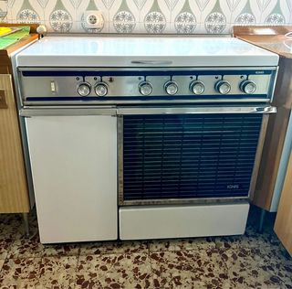 Cocina mixta con encimera de gas y fogones eléctricos. - Encimera de gas con cuatro quemadores. - Dos fogones eléctricos. - Horno. - Compartimento lateral. Está sucio pero funciona perfectamente