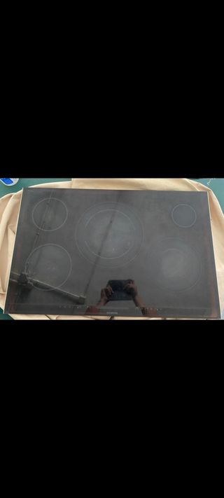 Vitrocerámica de la marca Siemens. - Encimera de cristal negro. - Indicador de calor residual. - Control táctil.tiene un pequeño golpe que apenas se ve por lo demás está muy bien no está rayada ni mucho menos