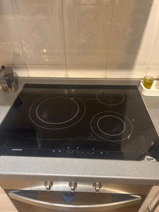 Vitrocerámica de la marca Siemens. Presenta una rotura en el cristal. - Encimera vitrocerámica. - Marca Siemens.