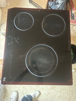 Placa vitrocerámica Teka de cuatro fuegos. Diseño moderno y elegante. - Marca: Teka - Modelo: TT 600 - Tipo de encimera: Vitrocerámica - Número de zonas de cocción: 4 pero tiene 1 fuego estropeado.
