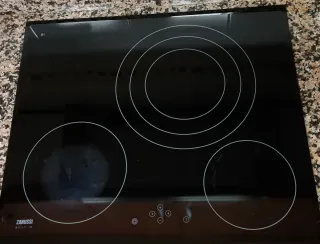 Vendo encimera vitrocerámica Zanussi de tres fuegos. Está en buen estado, aunque presenta algunas marcas de uso superficiales en la superficie de cristal. - Marca: Zanussi - Tipo: Vitrocerámica - Número de fuegos: 3