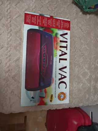 Envasadora de alimentos Vital Vac en color rojo. Ideal para conservar tus alimentos por más tiempo. - Potencia de 150W. - Permite envasar alimentos secos y húmedos. - Regula el grado de vacío. - Sirve para botellas y tuppers.