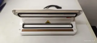 Envasadora al vacío de la marca CASO, modelo VC10. Su diseño es plateado y compacto. - Panel de control con botones táctiles. - Indicadores luminosos para cada función. *Tiene rota la parte frontal, como se ve en la imagen. No afecta al funcionamiento* Se envía o entrega en Basauri