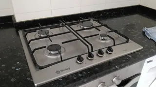 Encimera de gas Balay con cuatro quemadores. Ideal para tu cocina. - Encimera de acero inoxidable. - Cuatro quemadores de gas. - Mandos frontales. - Parrillas de hierro fundido. - medidas 58X52