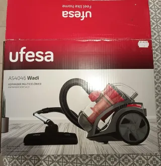 Aspiradora Ufesa modelo AS4046 Wadi, de tecnología multiciclónica. - Color: Gris y rojo. - Potencia: 700W. - Capacidad: 2L. Está completamente NUEVA, solo se ha sacado de la caja para probar que funciona. Se vende porque justo después de comprarla, nos han regalado una para Navidades. Aspira perfecta. Deja la casa impecable, y los rincones.